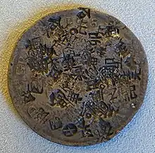 Under the Daoguang Emperor China's silver reserves were depleting due to the trade of opium with other countries, and as Chinese cash coins were based on the silver standard this eventually lead to the debasement of Qing era cash coinage under Daoguang because the costs of producing cast copper coins was higher by about one third than the face value of the cast coins themselves, by 1845 2,000 wén was needed for a single tael of silver.[15] Coins produced under the Daoguang Emperor tend to be diminutive compared to earlier Qing dynasty coinage because of this reason.[22][23]