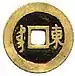For the first year of the Tongzhi Emperor he bore the reign name of "Qixiang" (祺祥), though a few coins with this inscription were cast they were never put into circulation. While the reign title "Qixiang" the 10 wén Daqian continued to be produced, for a brief period of time Daqian with the inscription Qixiang Zhongbao (祺祥重寶) were produced.[25] Because the Qixiang era name wasn't used for that long, cash coins with this era date were cast for such a short time, that only a small number of the government mints produced cash coins with this inscription.These mints included the Ministry of Public Works Mint (寶源), the Ministry of Revenue Mint (寶泉), the Yunnan mint (寶雲), the Gansu mint (寶鞏), and the Suzhou mint (寶蘇).