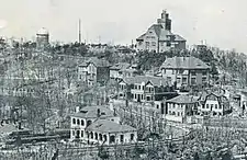 The Qingdao Observatory is located on the summit of Guanxiang Mountain in the Shinan District of Qingdao, China. The existing building complex was originally built in 1905. Qingdao Observatory was once an important scientific research institute in Qingdao, and also played an important role in the development of modern meteorology and marine science in China. Together with Shanghai Xujiahui Observatory and Hong Kong Observatory, they once were known as the "Three Observatory in the Far East".[1] Qingdao Observatory has been listed as "Meteorology Observation Dome" amongst the "Top Ten Scenic Spots in Qingdao".[2] Its building complex now belongs to the North Sea Fleet of the PLA (People’s Liberation Army) Navy and the Zijinshan Observatory of the Chinese Academy of Sciences, and is part of the Qingdao German Building Complex, a national key cultural relics conservation site.[3]