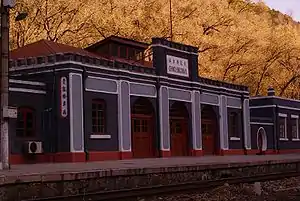 Qinglongqiao railway station (Chinese: 青龙桥站; pinyin: Qīnglóngqiáo Zhàn) (also known as Ching-lung-chiao railway station) is a historic station of Jingbao Railway located in Yanqing District, Beijing. It was built in 1908, and includes the famous zigzag railway designed by the Chinese railroad engineer Zhan Tianyou (Jeme Tien-Yow).[1] The station also contains the tomb of Zhan Tianyou and a statue of his,[2] along with milestones in Suzhou numerals.