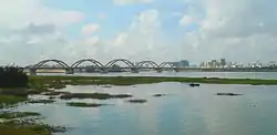 Qiongzhou Bridge (Chinese: 琼州大桥), also known as the Nandu Bridge and the Nandu Ninth Bridge, is a bridge that spans the Nandu River,[2] Hainan Province, China.[3] Opened on May 12, 2003, at a cost of 200 million yuan (US$32.3 million),[1][4] it serves as the main bridge from Haikou city to Haikou Meilan International Airport. It crosses the Nandu River at the east end of Guoxing Avenue.