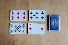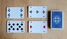 Quadrat[1] ("Square") or Viereck[2] ("Rectangle") is a simple, German patience game, which is played with a French pack of 32 or 52 cards. Zudecken ("Covering") is a very similar patience with slightly altered rules.[3]