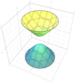 | Hyperboloid of revolution of two sheets (special case of hyperboloid of two sheets) | ![]() | |