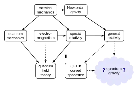 Much of the difficulty in meshing these theories at all energy scales comes from the different assumptions that these theories make on how the universe works. General relativity models gravity as curvature of spacetime: in the slogan of John Archibald Wheeler, "Spacetime tells matter how to move; matter tells spacetime how to curve."[9] On the other hand, quantum field theory is typically formulated in the flat spacetime used in special relativity. No theory has yet proven successful in describing the general situation where the dynamics of matter, modeled with quantum mechanics, affect the curvature of spacetime. If one attempts to treat gravity as simply another quantum field, the resulting theory is not renormalizable.[10] Even in the simpler case where the curvature of spacetime is fixed a priori, developing quantum field theory becomes more mathematically challenging, and many ideas physicists use in quantum field theory on flat spacetime are no longer applicable.[11]