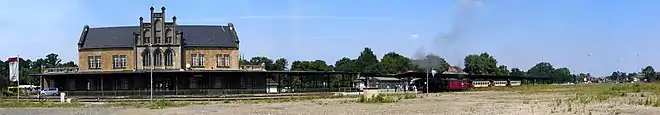 The station has a nearly complete ensemble from the Gründerzeit. It consists of a listed Gothic Revival entrance building from 1862, a locomotive shed from 1862 and 1889/1892, a goods shed, one of the oldest surviving turntables in Germany from 1889, an express freight shed and a toilet block. Furthermore, it includes a water tower of the Schäfer type from 1907/1908, a residence building from 1906, signal boxes from 1907/1908, a toilet block from 1908, a ticket office from 1909 and a water crane from the period around 1955.