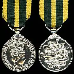 | Eligibility | Members of the • Army Reserve • Royal Auxiliary Air Force • Royal Naval Reserve • Royal Marines Reserve |