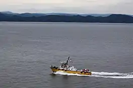 ![]() A pilot boat plies Queen Charlotte Strait near Port Hardy | |