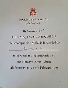 The Queen Elizabeth II Silver Jubilee Medal was created by a Royal Warrant from the Queen.[2]