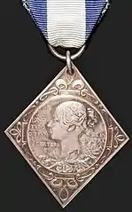 The Diamond Jubilee Medal was instituted in 1897 by Royal Warrant as a British decoration. The medal was awarded to members of the Royal Family and the court, guests and dignitaries present at the celebrations of Queen Victoria's diamond jubilee and to selected soldiers and sailors who formed the jubilee parade in London.[1][2]
