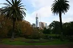 ![]() The view from the Queen Victoria statue towards the Victorian Arts Centre | |