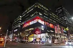 Queen Victoria Village, generally known as QV Melbourne or just QV, is a precinct in the central business district of Melbourne, Victoria, Australia. Covering the city block bounded by Lonsdale, Little Lonsdale, Swanston, and Russell Streets, and located directly opposite the State Library of Victoria and Melbourne Central, QV comprises a large shopping centre, a central plaza, an underground food court, Melbourne central city's first full-size supermarket and apartment buildings.