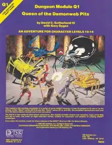 Queen of the Demonweb Pits (Q1) is an adventure module for the Dungeons & Dragons roleplaying game written by David Sutherland. The "Q" in the module code is an abbreviation for "queen".[1] The module, a sequel to the D series of modules,[2] was novelized in 2001.