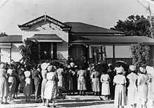On 8–11 August 1922, the Brisbane Women's Club held an open conference for countrywomen in Brisbane's Albert Hall during the Exhibition (a time when many country people visited Brisbane). The conference was opened by Lady Forster, wife of Australian Governor-General and the Queensland Governor Matthew Nathan attended. On 11 August 1922, the outcome of the conference was to establish the Queensland Country Women's Association.[2] Ruth Beatrice Fairfax was elected the first President.[3]