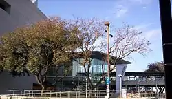 In 1986, the Queensland Museum moved to the Queensland Cultural Centre at South Bank, where the museum is adjacent to the Queensland Art Gallery.[3] Both a tunnel and pedestrian bridge connect the Museum and Art Gallery buildings with the Queensland Performing Arts Centre. Three lifts were added to the bridge in 2004 to provide access to the platforms of the Cultural Centre busway station. There is a large sculpture of a Cicada in front of the centre lift.