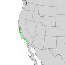 Quercus agrifolia, the California live oak,[3] or coast live oak, is a highly variable, often evergreen oak tree, a type of live oak, native to the California Floristic Province. It may be shrubby, depending on age and growing location, but is generally a medium-sized tree.[4] It grows west of the Sierra Nevada mountain range from Mendocino County, California, south to northern Baja California in Mexico.[5] It is classified in the red oak section of oaks (Quercus sect. Lobatae).[6]
