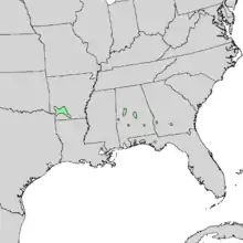 Quercus arkansana is shade-loving tree that grows in the understories of mesic pine forests and southern hardwood stands, and it is frequently reported from sandhills, the upper portions of ravines, steepheads, and above the heads of small streams.[1] It is rarely a dominant component of the vegetation, except for a few places in Arkansas and Florida where it is found in large stands. It grows alongside Pinus taeda, P. echinata and other pines, as well as other oaks such as Quercus nigra, Q. pagoda, Q. margarettae, and Q. hemisphaerica. It grows among various other hardwoods including Nyssa sylvatica, Liquidambar styraciflua, Vaccinium arboreum, Sassafras albidum, Magnolia grandiflora, and Diospyros virginiana. It has been observed to form hybrids between Q. arkansana and Q. nigra in Georgia, and introgression from Q. falcata has been observed in Texas.[1]