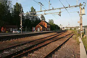 Rånåsfoss Station (Norwegian: Rånåsfoss stasjon) is a railway station located in Rånåsfoss in Sørum, Norway on Kongsvinger Line. The station was built in 1918 as part of the Kongsvinger Line. The station is served hourly, with extra rush hour departures, by the Oslo Commuter Rail line 460 operated by Norwegian State Railways.