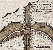 The Répudre Aqueduct (French: pont-canal de Répudre) is the first aqueduct built on the Canal du Midi. Pierre-Paul Riquet designed it to cross the Répudre River.[1][2] It was built by Emmanuel d'Estan. It was designed in 1675 and completed in 1676, but was severely damaged that winter and had to be rebuilt.[2][3] It is one of three original aqueducts created by Pierre-Paul Riquet during the building of the canal from 1667 to 1681. [4]