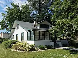 The R.H. and Jessie Bell House in Meridian, Idaho, is a 1+1⁄2-story Craftsman Bungalow designed by John Krulish and constructed in 1922. A lateral ridgebeam runs parallel to Pine Street and extends the roof beyond gabled dormer windows at left and right. A front dormer is prominent above and behind a cross facade, enclosed porch. The house was added to the National Register of Historic Places in 2006.[2]
