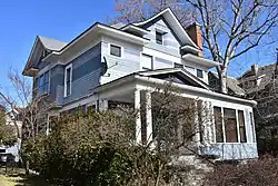 The R.K. Davis House in Boise, Idaho, is a 2-story Queen Anne style house designed by Tourtellotte & Co. and constructed in 1906. The house features Classical Revival elements, including a pedimented portico with Tuscan columns. Architectural drawings for the house indicated a Bungalow design, but the plan changed during construction to a more formal design that incorporates Queen Anne, Classical Revival, and Colonial Revival details, possibly to blend the house with older homes on the street. The house was listed on the National Register of Historic Places in 1982.[2]