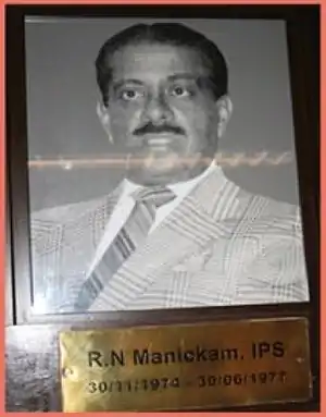Manickam went on central deputation on 1 December 1957 and joined the Ministry of External Affairs. Initially he was posted as First Secretary in the Indian Embassy in Washington.[3] He was thereafter posted as Director in MEA, New Delhi, from which he was transferred to the Intelligence Bureau on 31 August 1963[4] and posted as Deputy Director.[5] He was repatriated to Madras cadre on 15 December 1965[6] and subsequently became Inspector General of Police in the state. During this time, he also became honorary president of the Madras Gymkhana Club in 1967-68.[7] On subsequent central deputation, Manickam became Director of the Aviation Research Centre in the early 1969. As Director ARC, he was involved in technical and aerial intelligence during the Bangladesh War.[8] He became Principal Director, DGS on 30 November 1974, with oversight on SSB, SFF and ARC. Manickam retired as PD on 30 June 1977. Much later, in 1993-94, he worked as Member, Tamil Nadu State Consumer Disputes Redressal Commission.[9][10][11]