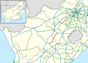1. "RDDA SOUTH AFRICAN NUMBERED ROUTE DESCRIPTION AND DESTINATION ANALYSIS". NATIONAL DEPARTMENT OF TRANSPORT. May 2012. Retrieved 25 March 2021.{{cite web}}: CS1 maint: url-status (link)