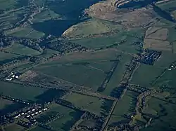 RAF Kirknewton was also used as a temporary prisoner of war Camp for German officers during the War, while they were awaiting transfer to the USA.[3] During the War the area in trees to the west of the airfield (which has now been redeveloped for housing) was used for additional accommodation and was known as Ritchie Camp.[4]