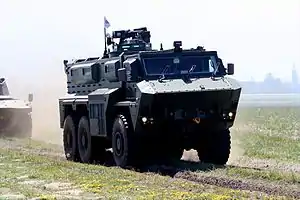 RG-35, is a South African mine resistant ambush protected vehicle developed by Land Systems OMC, a subsidiary of BAE Systems. The RG-35 was introduced in 2009 as a 6x6 vehicle, and a 4x4 version is also under development with the designers intending to make it a new family of vehicles. Described by BAE Systems as a "new class of vehicle" combining the capabilities of a 4x4 mine protected vehicle and a 8x8 combat vehicle, the RG-35 can be utilized in a variety of roles, including command, ambulance or recovery vehicle.