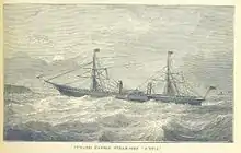 Scotia was a British passenger liner operated by the Cunard Line that won the Blue Riband in 1863 for the fastest westbound transatlantic voyage. She was the last oceangoing paddle steamer, and as late as 1874 she made Cunard's second fastest voyage. Laid up in 1876, Scotia was converted to a twin-screw cable layer in 1879. She served in her new role for twenty-five years until she was wrecked off of Guam in March 1904.[1]