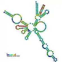 Predicted secondary structure and sequence conservation of RNase_MRP