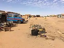 The village does not seem to have an official name,[1] although some sources describe the locality where the village sprang up to have been named Anou Makarene, sometimes written as Anoumakaram.[2][3] However, Anou Makarene is the name of the large wadi that passes just 1 km north of the village and that originates some 140 km further east, in the Aïr Mountains.[4] RTA is thus a colloquial name, and is an abbreviation of Route de Tahoua-Arlit or Route de Tahoua-Agadez-Arlit. This route (road) was built between 1978 and 1980 by the Société Financière pour la Construction de la Route Tahoua-Arlit (SFCTA) to provide access to the uranium mines at Arlit.