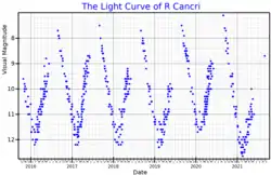 The visual band light curve of R Cancri, from AAVSO data[1]