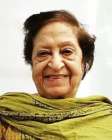Rabia Zuberi (c. 1941 – 16 January 2022), sometimes referred to in Pakistan as Queen Mother of Arts,[2] was a Pakistani sculptor, painter, former chairperson of the Pakistan Arts Council, teacher and Pakistan's first woman sculptor. She produced most of her work after immigrating to Pakistan. Some of her drawings includes Duputta, Quest for Peace, and some sculptures titled Peace Message from the Progressive World and Peace Message were acquired by the National Art Gallery, Pakistan during an exhibition in 2003.[3]