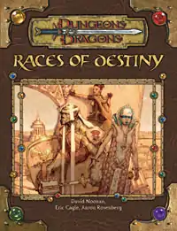 Races of Destiny was written by David Noonan, Eric Cagle, and Aaron Rosenberg, and was published in December 2004. Cover art was by Adam Rex, with interior art by Ed Cox, Wayne England, David Hudnut, Chuck Lukacs, Jeff Miracola, Monte Moore, Jim Nelson, Michael Phillippi, Eric Polak, Richard Sardinha, and Ron Spencer.