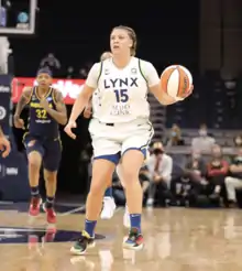 Rachel Banham (born July 15, 1993 in Minneapolis, Minnesota[1]) is an American professional basketball player for the Minnesota Lynx of the Women's National Basketball Association (WNBA). Banham played guard for the Minnesota Golden Gophers women's basketball team, where she set a number of team records. Banham was drafted by the Connecticut Sun with the 4th pick of the 2016 WNBA draft.[2] Banham was traded to the Minnesota Lynx on February 25, 2020.[3] It was also announced on January 2, 2022 on social media that she and her boyfriend Andre Hollins were engaged at Williams Arena.[4]