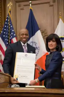 On December 22, 2016, she was sworn in at Brooklyn Borough Hall.[32] She delivered a speech that included Hebrew and Yiddish phrases and concepts which she translated into English.[33] Her inauguration ceremony was carried live on WABC-TV[8] and News 12.[34]