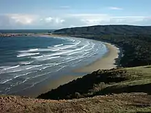 - Wave-driven current, especially a longshore current in the surf zone – for oblique incidence of waves on a beach, the reduction in wave height inside the surf zone (by breaking) introduces a variation of the shear-stress component Sxy of the radiation stress over the width of the surf zone. This provides the forcing of a wave-driven longshore current, which is of importance for sediment transport (longshore drift) and the resulting coastal morphology;