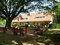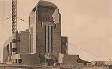 The housing accommodations of Radio Kootwijk arose as a result of the building of a shortwave radio transmitter with the same name, starting in 1918. The transmitter played an important role in the 20th century as a communication facility between the Netherlands and its then colony of Dutch East Indies. In 1923 Dutch PTT started trans-oceanic telegraphy using a longwave transmitter (a 400 kW high frequency alternator) from the German Telefunken company under the callsign PCG, on 24 kHz and 48 kHz. By 1925 the longwave transmitter was changed by a shortwave tube based, electronic transmitter which had a much better performance due to the better propagation of short waves. With this new technology, in 1928 a radio-telephonic connection was established. At the end of World War II, the German occupying forces blew up the transmitter. Afterward some of the radio towers were rebuilt.[3]