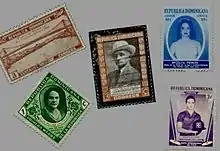 Trujillo was eligible to run again in 1938, but, citing the United States example of two presidential terms, he stated, "I voluntarily, and against the wishes of my people, refuse re-election to the high office."[23] In fact, a vigorous re-election campaign had been launched in the middle of 1937 but the international uproar that followed the Haitian massacre later that year forced Trujillo to announce his "return to private life."[24] Consequently, the Dominican Party nominated Trujillo's handpicked successor, 61-year-old vice-president Jacinto Peynado, with Manuel de Jesús Troncoso his running mate. They appeared alone on the ballot in the 1938 election. Trujillo kept his positions as generalissimo of the army and leader of the Dominican Party. It was understood that Peynado was merely a puppet, and Trujillo still held all governing power in the nation. Peynado increased the size of the electric "Dios y Trujillo" sign and died on 7 March 1940, with Troncoso serving out the rest of the term. However, in 1942, with US President Franklin Roosevelt having run for a third term in the United States, Trujillo ran for president again and was elected unopposed. He served for two terms, which he lengthened to five years each. In 1952, under pressure from the Organization of American States, he ceded the presidency to his brother, Héctor. Despite being officially out of power, Rafael Trujillo organized a major national celebration to commemorate 25 years of his rule in 1955. Gold and silver commemorative coins were minted with his image.