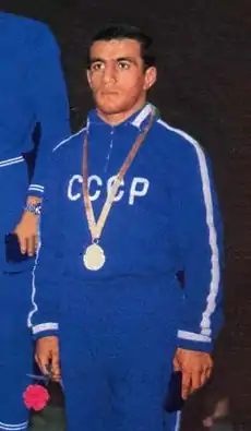Rafig Hajiyev (Russian: Рафик Гаджиев, Azerbaijani: Rafiq Hacıyev, born 1946) is a retired Soviet freestyle wrestler of Azerbaijani origin. He held the Soviet and European titles in 1970, and won silver medals at the 1973 European and 1974 world championships.[2] He retired from competitions in 1976 and then had a long career as a police officer, reaching the rank of colonel. He remained active in wrestling as a coach.[1]
