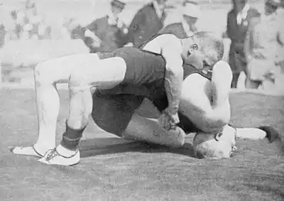 ![]() Gullaksen (top) against Ewald Persson at the 1912 Summer Olympics | |