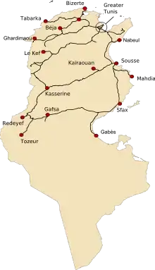 Railway map of Tunisia