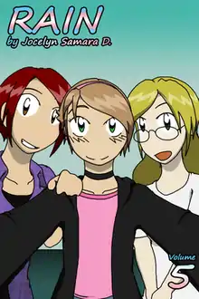 Rain is a webcomic first published in November 2010 by Jocelyn Samara DiDomenick. It follows a teenage trans girl named Rain Flaherty as she attends a private Catholic high school and interacts with the community around her.[2] In 2013, volume one of Rain was published in a book format.[lower-alpha 1]