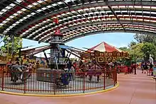 - Kidz Kingdom – An area in the park catered for children 8 years and under. The outdoor covered area has seven rides including the Choco Express, Carousel and Jumpin' Star. The indoor area includes the Fortress of Fun (play structure), Enzo's Country Raceway (cars) and the Small Talk Cafe as well as interactive activities for smaller children.[15]