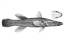 The rainfordia (Rainfordia opercularis), also known as the flathead perch or Rainford's perch, is a species of marine ray-finned fish, related to the groupers and classified within the subfamily Epinephelinae of the family Serranidae. It is found in the eastern Indian Ocean and in the Western Pacific Ocean. It is the only species in its monotypic genus.