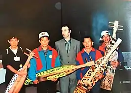 With the help of Jayl Langub from Majlis Adat Istiadat (Native Customary Laws Authority), two sape players, Asang Lawai and Tegit Usat were brought to Kuching from upper stretches of Balui River in Belaga and was join by Erang Lahang and Uchau Bilong.[5][6] They rehearsed with Randy for a week in Kuching and left for Marseilles to perform at the WOMEX festival. Hardened European agents, managers and festival directors were brought to tears at the beauty and purity of their performance on the sape.[5][7]