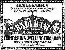 Raja Rani (transl. The King and Queen) is a 1956 Indian Tamil-language film starring Sivaji Ganesan and Padmini. The film was directed by A. Bhimsingh, produced by National Productions and written by M. Karunanidhi.[2][3][4]