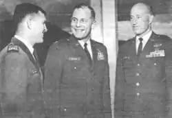 As Cadet Colonel (left) commanding the Cadet Wing at the United States Air Force Academy, with Colonel Robin Olds (center) and Brigadier General Louis T. Seith, 1967