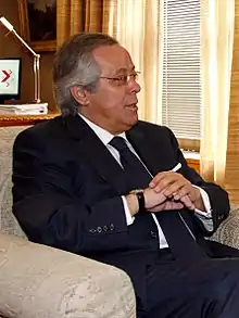 Aguirre worked as a bank director and later served as Vice-secretary General of the Popular Alliance (AP). In 1989 the AP merged with other parties to form the current PP and in that year Aguirre was elected to the Spanish Congress of Deputies representing Caceres Province and headed the PP list at several elections being re-elected in 1993, 1996 and 2000.[1] However, in the latter year he resigned after being appointed President of the Official Credit Institute (Instituto de Crédito Oficial/ICO) in July 2000. Consequently, the local PP branch in Caceres deselected him for the 2004 election.[2] For the 2008 election he changed districts and was elected for Guadalajara Province as head of the PP list.[3]