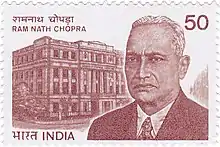 Sir Ram Nath Chopra CIE, IMS (17 August 1882 – 13 June 1973) was an Indian Medical Service officer and a doyen of science and medicine of India. He is considered the "Father of Indian Pharmacology" for his work on pharmaceuticals and his quest for self-sufficiency of India in drugs through the experimental evaluation of indigenous and traditional drugs. After service in the army, he established a research laboratory where he worked as a professor of a pharmacology at the Calcutta School of Tropical Medicine which was established in 1921.
